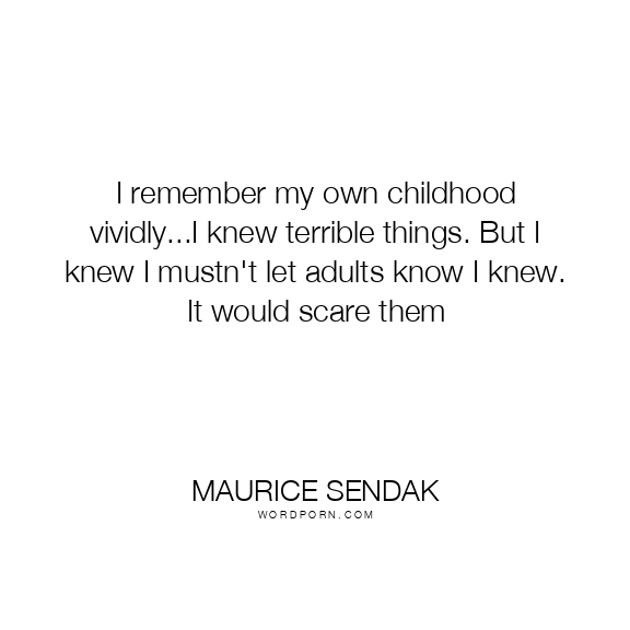 I remember my own childhood vividly...I knew terrible things. But I knew I mustn't let adults know I knew. It would scare them