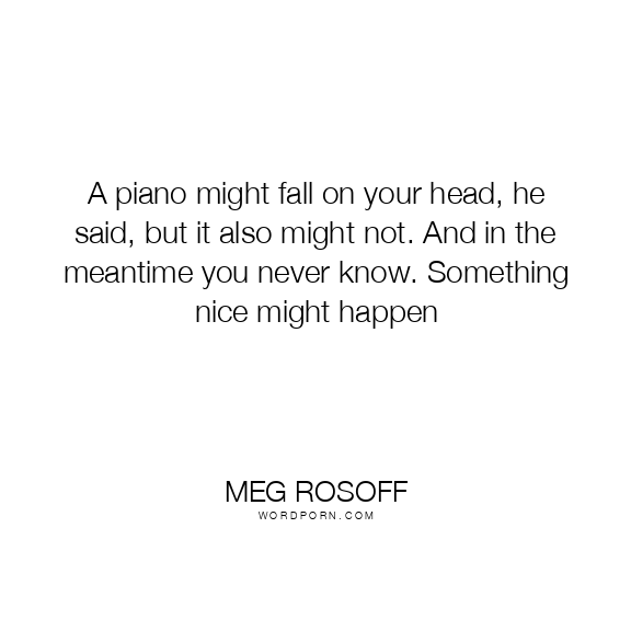 A piano might fall on your head, he said, but it also might not. And in the meantime you never know. Something nice might happen