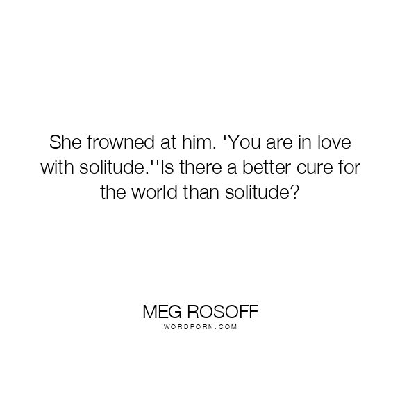 She frowned at him. 'You are in love with solitude.''Is there a better cure for the world than solitude?