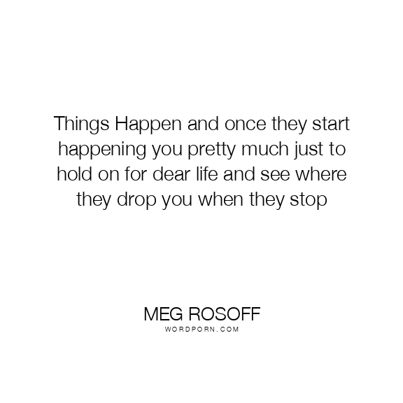 Things Happen and once they start happening you pretty much just to hold on for dear life and see where they drop you when they stop