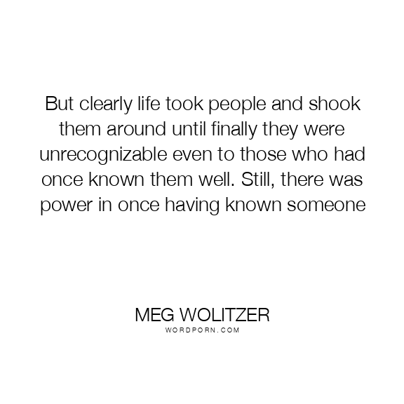 But clearly life took people and shook them around until finally they were unrecognizable even to those who had once known them well. Still, there was power in once having known someone