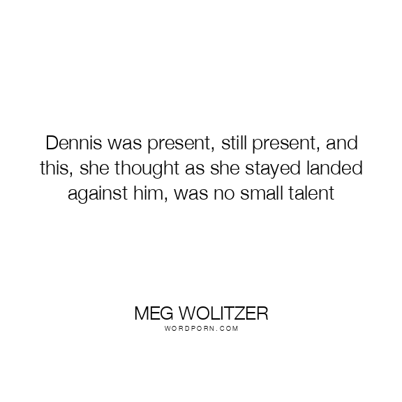 Dennis was present, still present, and this, she thought as she stayed landed against him, was no small talent