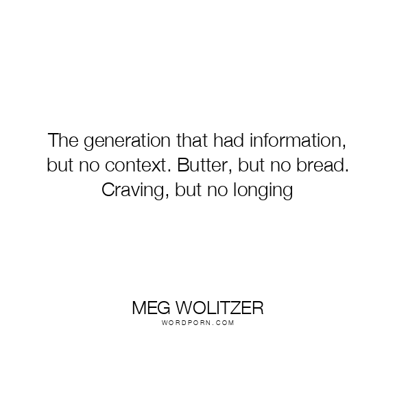 The generation that had information, but no context. Butter, but no bread. Craving, but no longing