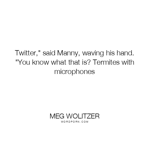 Twitter," said Manny, waving his hand. "You know what that is? Termites with microphones