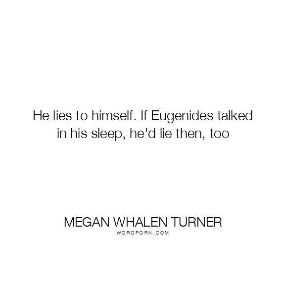 He lies to himself. If Eugenides talked in his sleep, he'd lie then, too