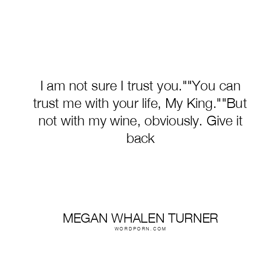 I am not sure I trust you.""You can trust me with your life, My King.""But not with my wine, obviously. Give it back