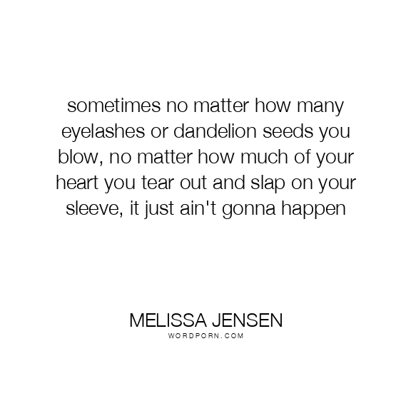 sometimes no matter how many eyelashes or dandelion seeds you blow, no matter how much of your heart you tear out and slap on your sleeve, it just ain't gonna happen