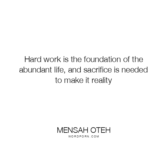 Hard work is the foundation of the abundant life, and sacrifice is needed to make it reality