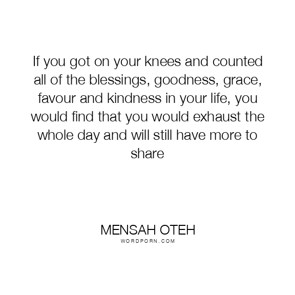 If you got on your knees and counted all of the blessings, goodness, grace, favour and kindness in your life, you would find that you would exhaust the whole day and will still have more to share