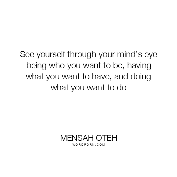 See yourself through your mind’s eye being who you want to be, having what you want to have, and doing what you want to do