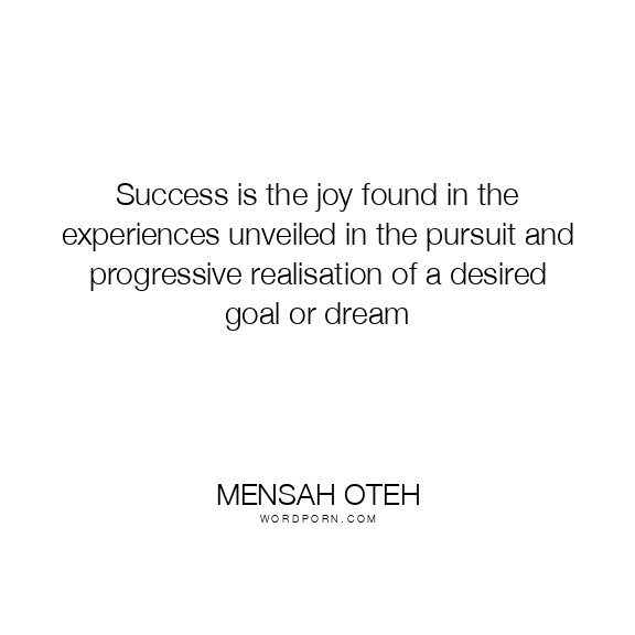 Success is the joy found in the experiences unveiled in the pursuit and progressive realisation of a desired goal or dream