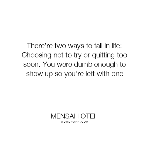 There’re two ways to fail in life: Choosing not to try or quitting too soon. You were dumb enough to show up so you’re left with one