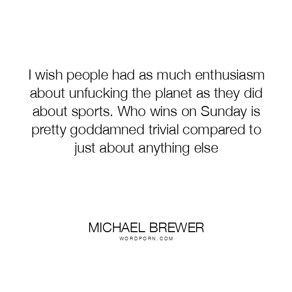 I wish people had as much enthusiasm about unfucking the planet as they did about sports. Who wins on Sunday is pretty goddamned trivial compared to just about anything else