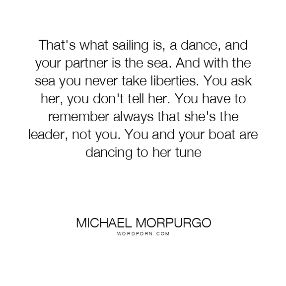 That's what sailing is, a dance, and your partner is the sea. And with the sea you never take liberties. You ask her, you don't tell her. You have to remember always that she's the leader, not you. You and your boat are dancing to her tune