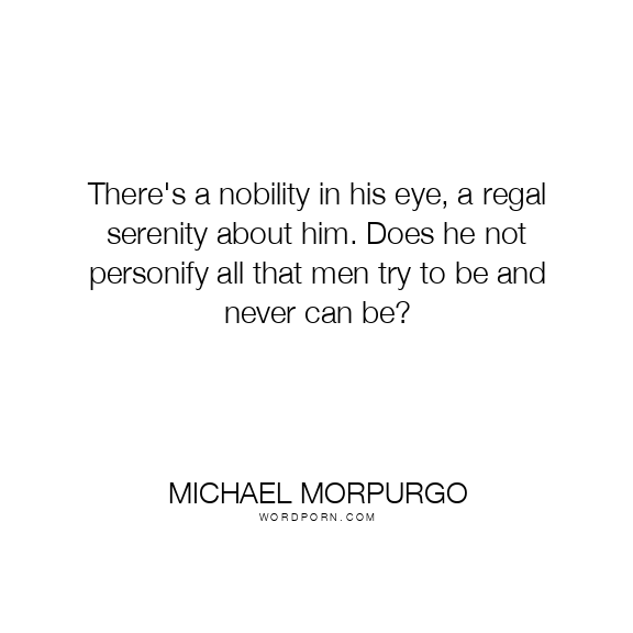 There's a nobility in his eye, a regal serenity about him. Does he not personify all that men try to be and never can be?
