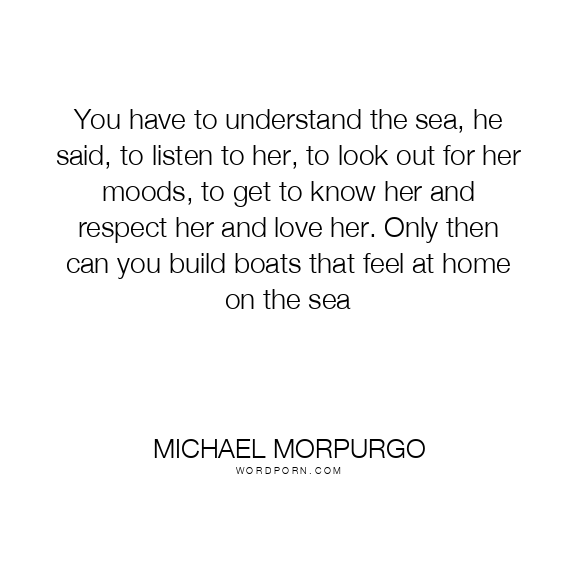 You have to understand the sea, he said, to listen to her, to look out for her moods, to get to know her and respect her and love her. Only then can you build boats that feel at home on the sea