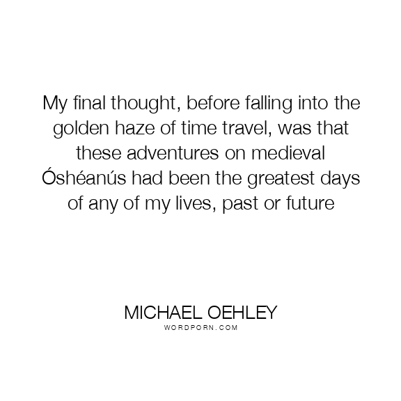 My final thought, before falling into the golden haze of time travel, was that these adventures on medieval Óshéanús had been the greatest days of any of my lives, past or future