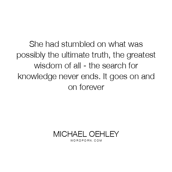 She had stumbled on what was possibly the ultimate truth, the greatest wisdom of all - the search for knowledge never ends. It goes on and on forever