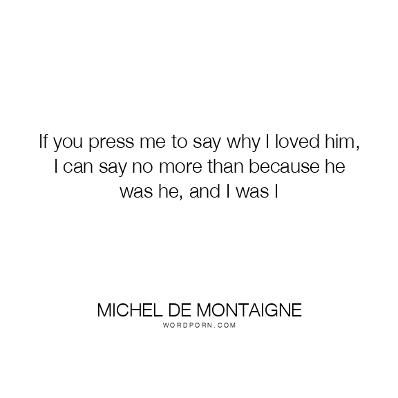 If you press me to say why I loved him, I can say no more than because he was he, and I was I