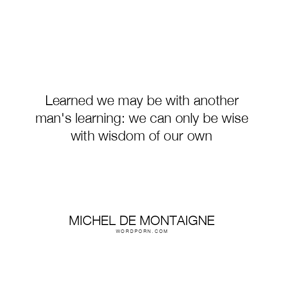 Learned we may be with another man's learning: we can only be wise with wisdom of our own