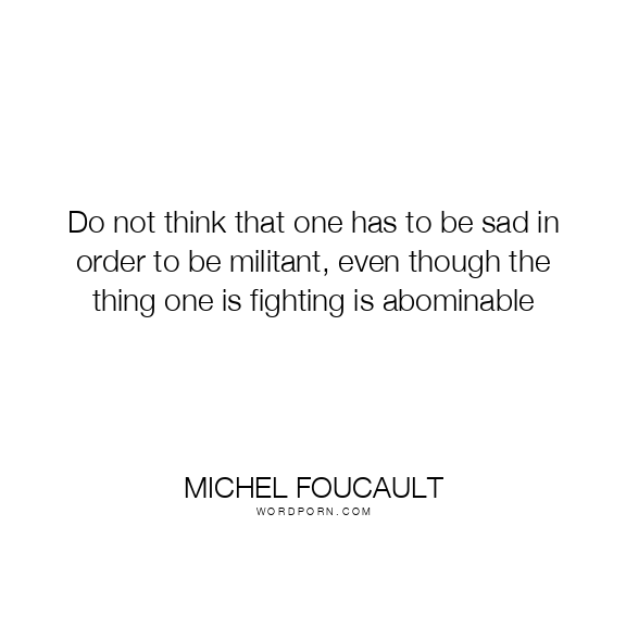 Do not think that one has to be sad in order to be militant, even though the thing one is fighting is abominable