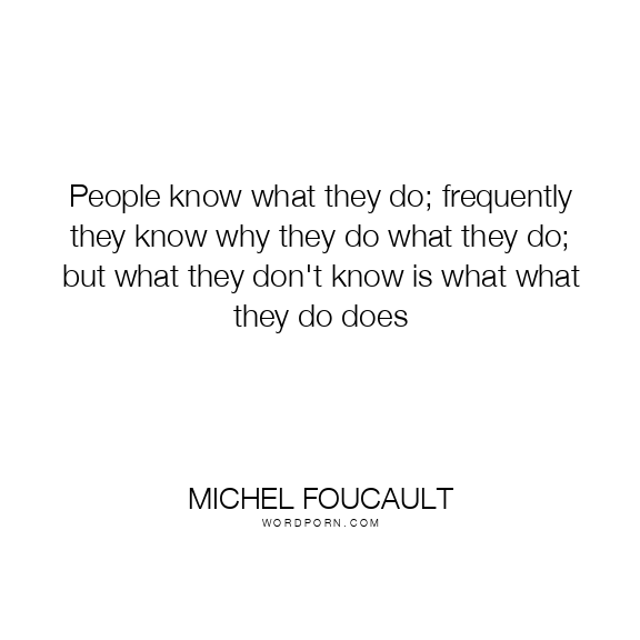 People know what they do; frequently they know why they do what they do; but what they don't know is what what they do does
