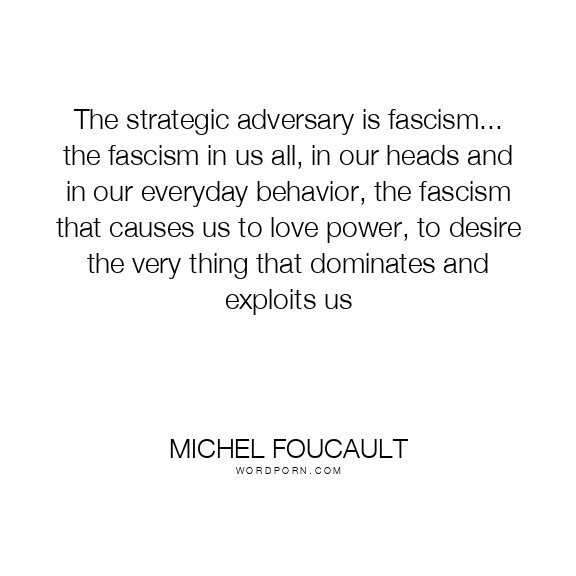 The strategic adversary is fascism... the fascism in us all, in our heads and in our everyday behavior, the fascism that causes us to love power, to desire the very thing that dominates and exploits us