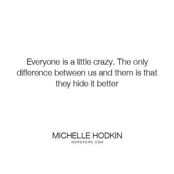Everyone is a little crazy. The only difference between us and them is that they hide it better