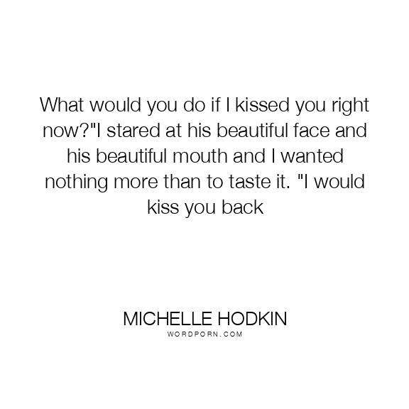 What would you do if I kissed you right now?"I stared at his beautiful face and his beautiful mouth and I wanted nothing more than to taste it. "I would kiss you back
