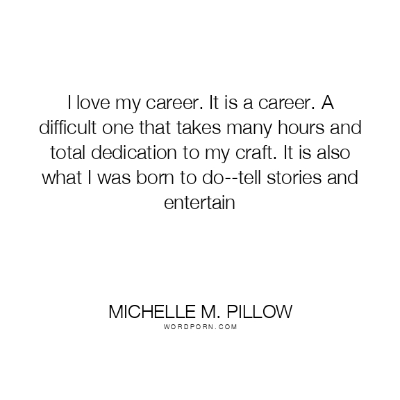 I love my career. It is a career. A difficult one that takes many hours and total dedication to my craft. It is also what I was born to do--tell stories and entertain