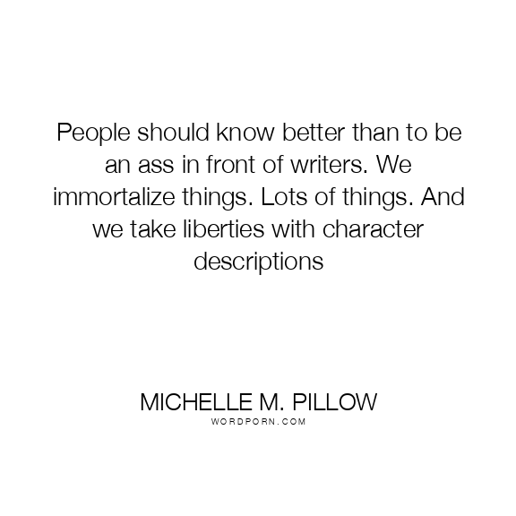People should know better than to be an ass in front of writers. We immortalize things. Lots of things. And we take liberties with character descriptions