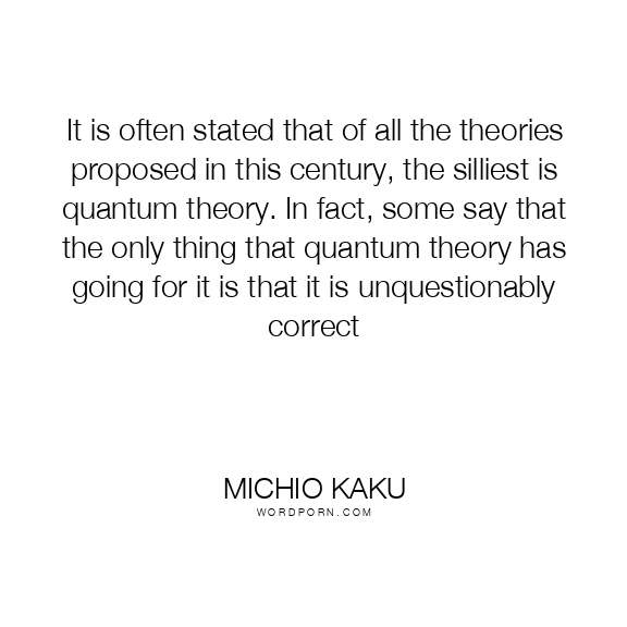 Michio Kaku quote. It is often stated that of all the theories proposed in this century, the silliest is quantum theory. In fact, some say that the only thing that quantum theory has going for it is that it is unquestionably correct