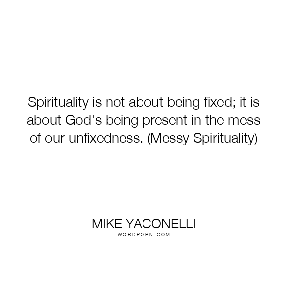 Copy Image Spirituality is not about being fixed; it is about God's being present in the mess of our unfixedness. (Messy Spirituality) Moms Typewriter A A SAVE THIS IMAGE