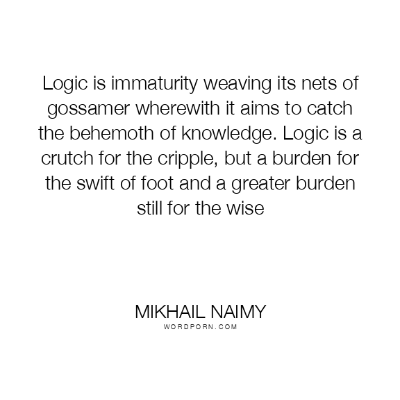 Logic is immaturity weaving its nets of gossamer wherewith it aims to catch the behemoth of knowledge. Logic is a crutch for the cripple, but a burden for the swift of foot and a greater burden still for the wise