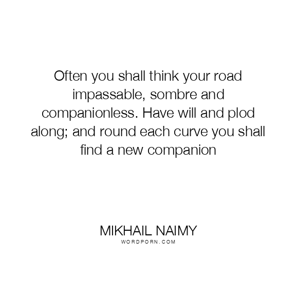 Often you shall think your road impassable, sombre and companionless. Have will and plod along; and round each curve you shall find a new companion