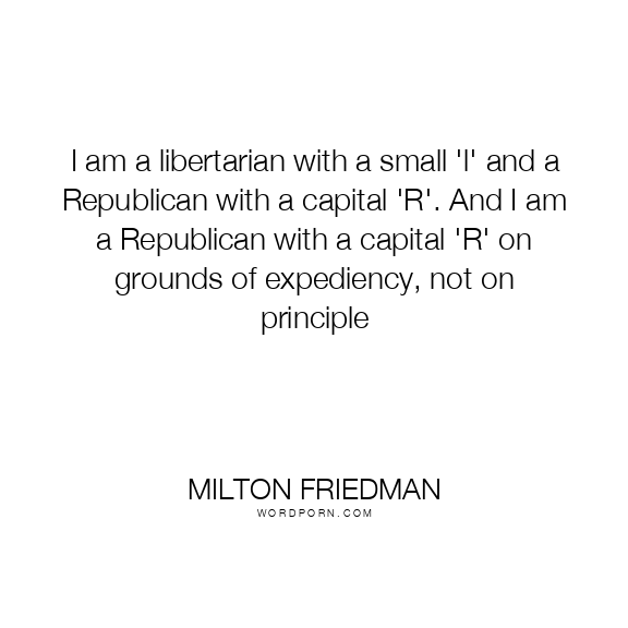 I am a libertarian with a small 'l' and a Republican with a capital 'R'. And I am a Republican with a capital 'R' on grounds of expediency, not on principle