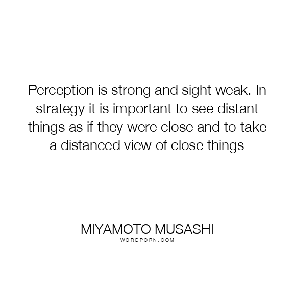 Perception is strong and sight weak. In strategy it is important to see distant things as if they were close and to take a distanced view of close things