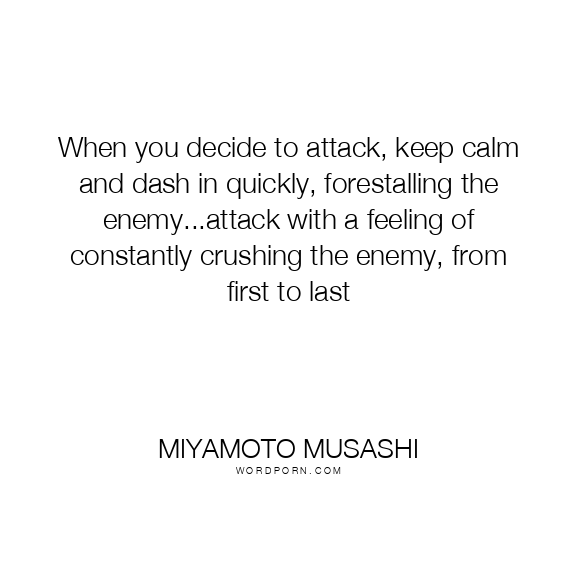 When you decide to attack, keep calm and dash in quickly, forestalling the enemy...attack with a feeling of constantly crushing the enemy, from first to last