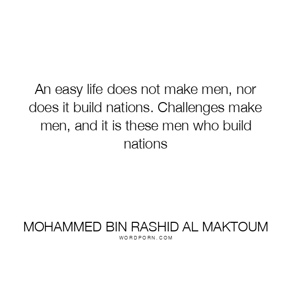 Copy Image An easy life does not make men, nor does it build nations. Challenges make men, and it is these men who build nations Moms Typewriter A A SAVE THIS IMAGE
