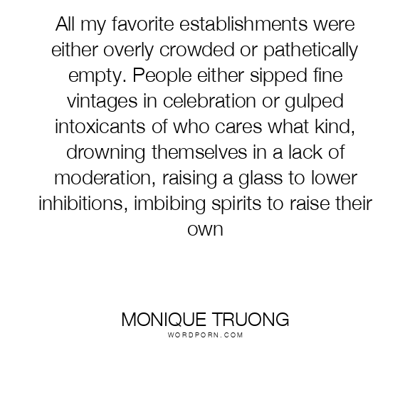 All my favorite establishments were either overly crowded or pathetically empty. People either sipped fine vintages in celebration or gulped intoxicants of who cares what kind, drowning themselves in a lack of moderation, raising a glass to lower inhibitions, imbibing spirits to raise their own