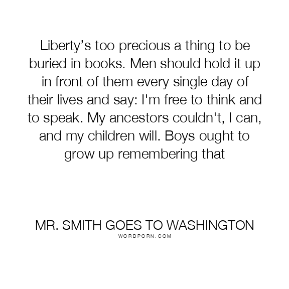 Liberty’s too precious a thing to be buried in books. Men should hold it up in front of them every single day of their lives and say: I'm free to think and to speak. My ancestors couldn't, I can, and my children will. Boys ought to grow up remembering that