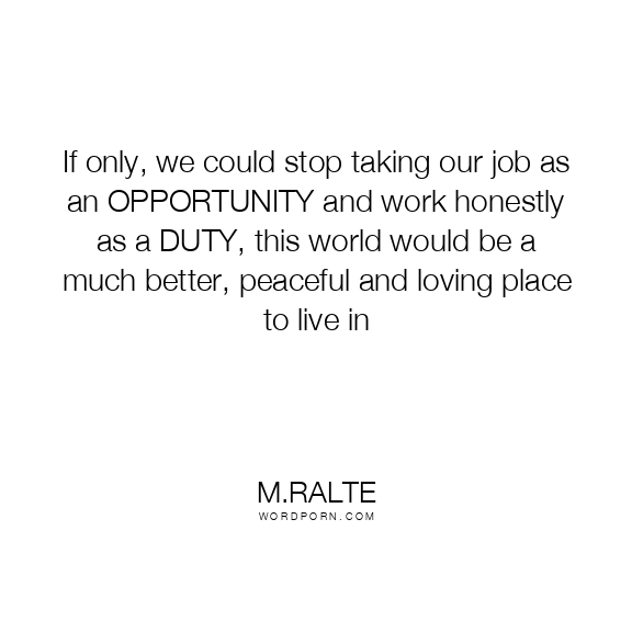 Copy Image If only, we could stop taking our job as an OPPORTUNITY and work honestly as a DUTY, this world would be a much better, peaceful and loving place to live in Moms Typewriter A A SAVE THIS IMAGE