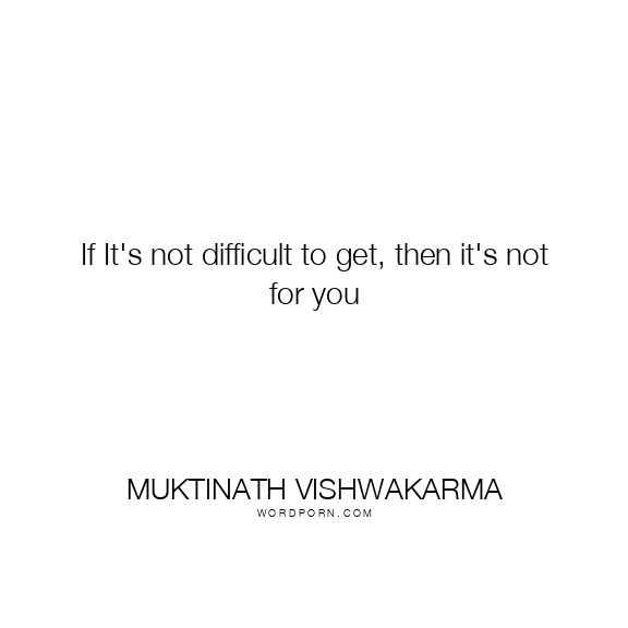 If It's not difficult to get, then it's not for you