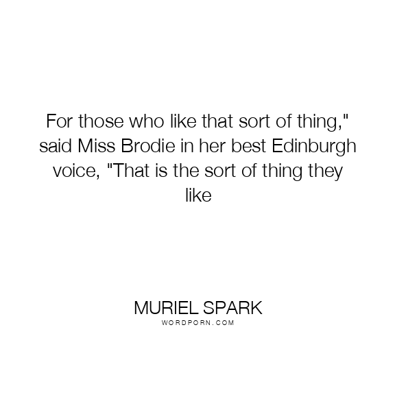 For those who like that sort of thing," said Miss Brodie in her best Edinburgh voice, "That is the sort of thing they like