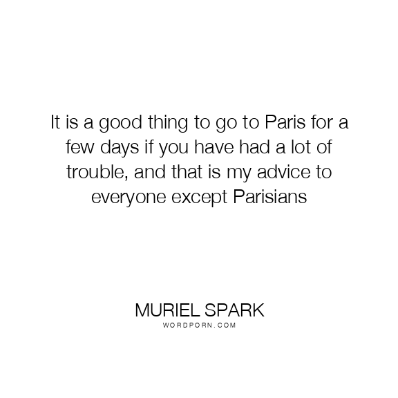 It is a good thing to go to Paris for a few days if you have had a lot of trouble, and that is my advice to everyone except Parisians