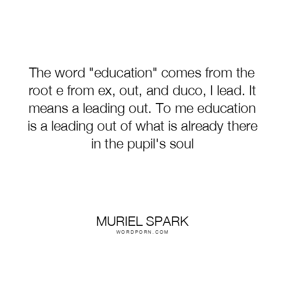 The word "education" comes from the root e from ex, out, and duco, I lead. It means a leading out. To me education is a leading out of what is already there in the pupil's soul
