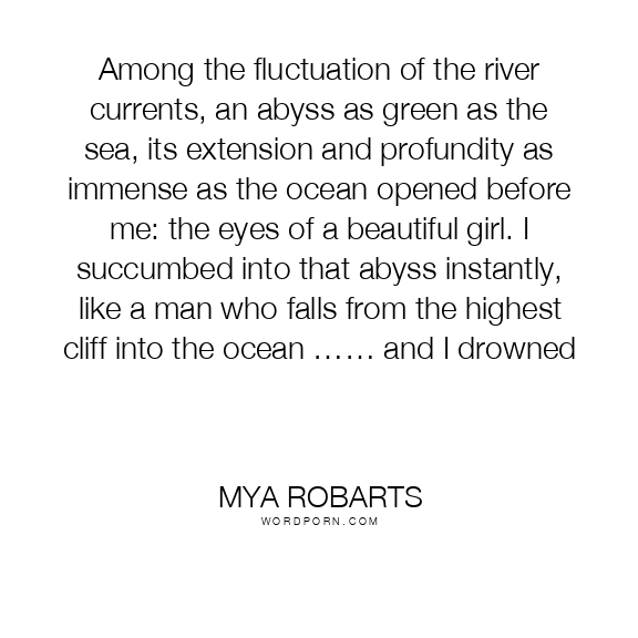 Among the fluctuation of the river currents, an abyss as green as the sea, its extension and profundity as immense as the ocean opened before me: the eyes of a beautiful girl. I succumbed into that abyss instantly, like a man who falls from the highest cliff into the ocean …… and I drowned