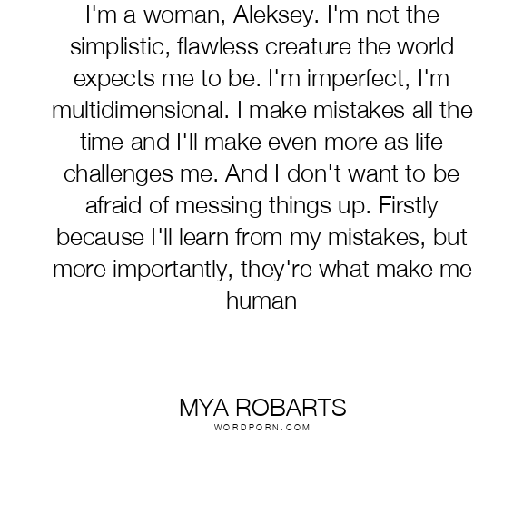 I'm a woman, Aleksey. I'm not the simplistic, flawless creature the world expects me to be. I'm imperfect, I'm multidimensional. I make mistakes all the time and I'll make even more as life challenges me. And I don't want to be afraid of messing things up. Firstly because I'll learn from my mistakes, but more importantly, they're what make me human