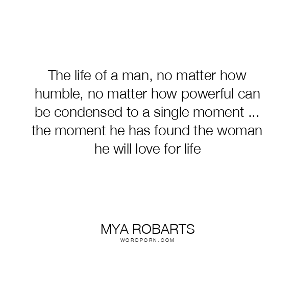 The life of a man, no matter how humble, no matter how powerful can be condensed to a single moment ... the moment he has found the woman he will love for life