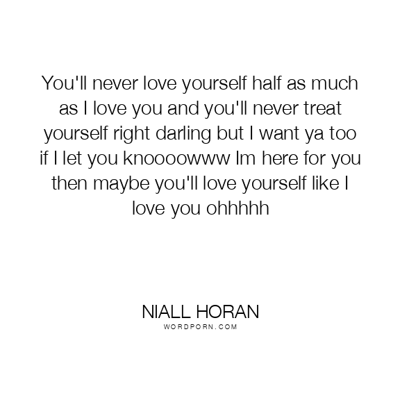 You'll never love yourself half as much as I love you and you'll never treat yourself right darling but I want ya too if I let you knoooowww Im here for you then maybe you'll love yourself like I love you ohhhhh